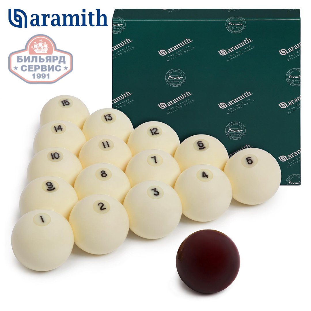 Шары Aramith Premier сделаны из высокотехнологичной феноло-альдегидной смолы и проходят многоступенчатый контроль качества по целому ряду параметров: оцениваются их плотность, однородность, диаметр и округлость, вес и упругость, а также качество изображения и полировки поверхности.