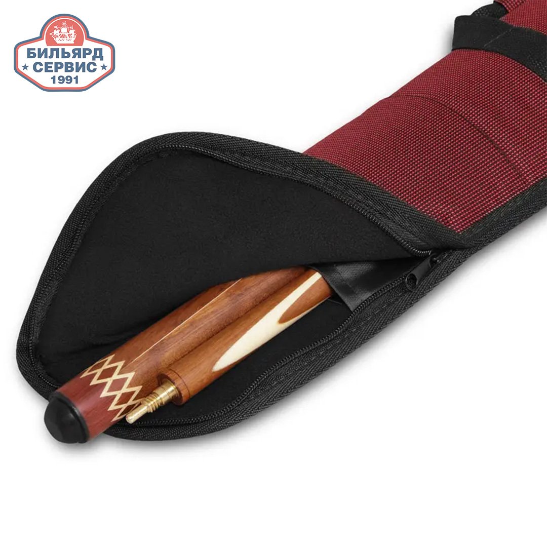 Чехол для кия (1-13) изготовлен из мягкий ткани. Оснащен карманом, наплечным ремнем и ручкой для переноски.
