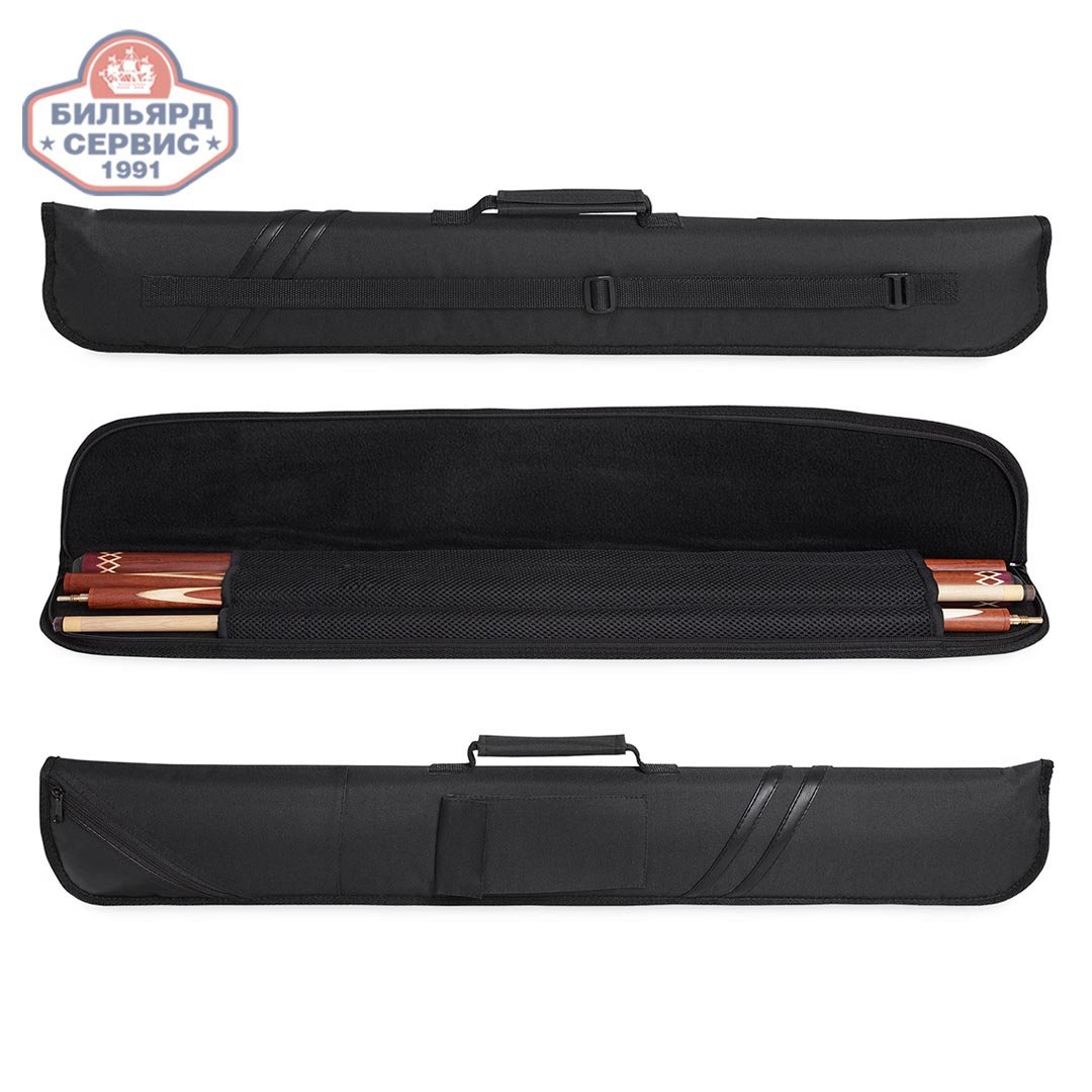Чехол на два кия изготовлен из водостойкой мягкий ткани с отделкой из кожи. Оснащен 2 карманами, наплечным ремнем и ручкой для переноски.