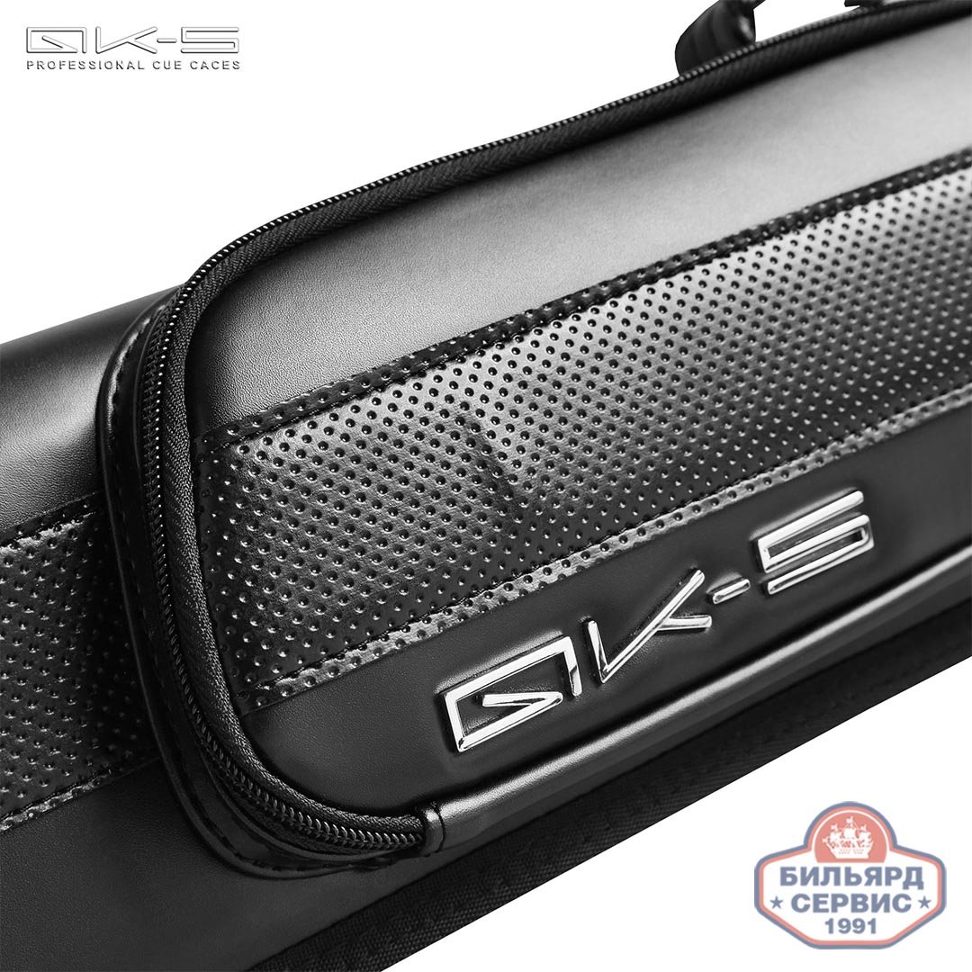 Чехол черного матового цвета с декоративной вставкой из перфорированного винила и с объемным металлическим логотипом бренда QK-S на фронтальной части позволит игроку поддержать собственный стильный образ, выдержанный в строгих классических тонах