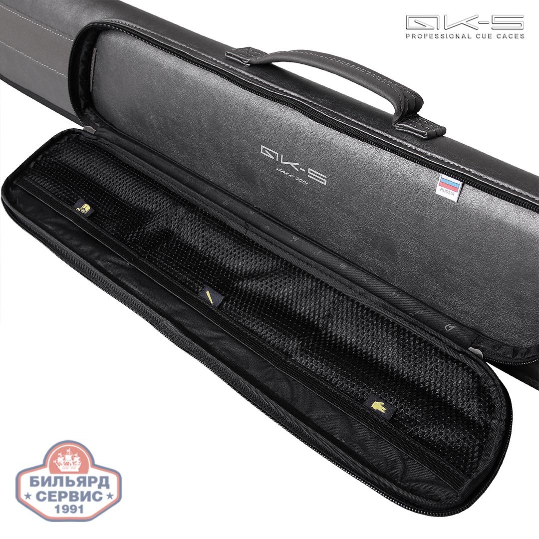 Чехол имеет отделения для шафта, турняка и удлинителя, снабжен удобной ручкой для переноски и дополнительным наплечным ремнем. Жесткий водоотталкивающий винил позволит уберечь кий от механических повреждений и облегчит уход за поверхностью чехла. Для хранения небольших бильярдных аксессуаров имеется дополнительный карман. Благодаря удобной застежке типа "Молния" игрок сможет легко и быстро достать или упаковать кий.