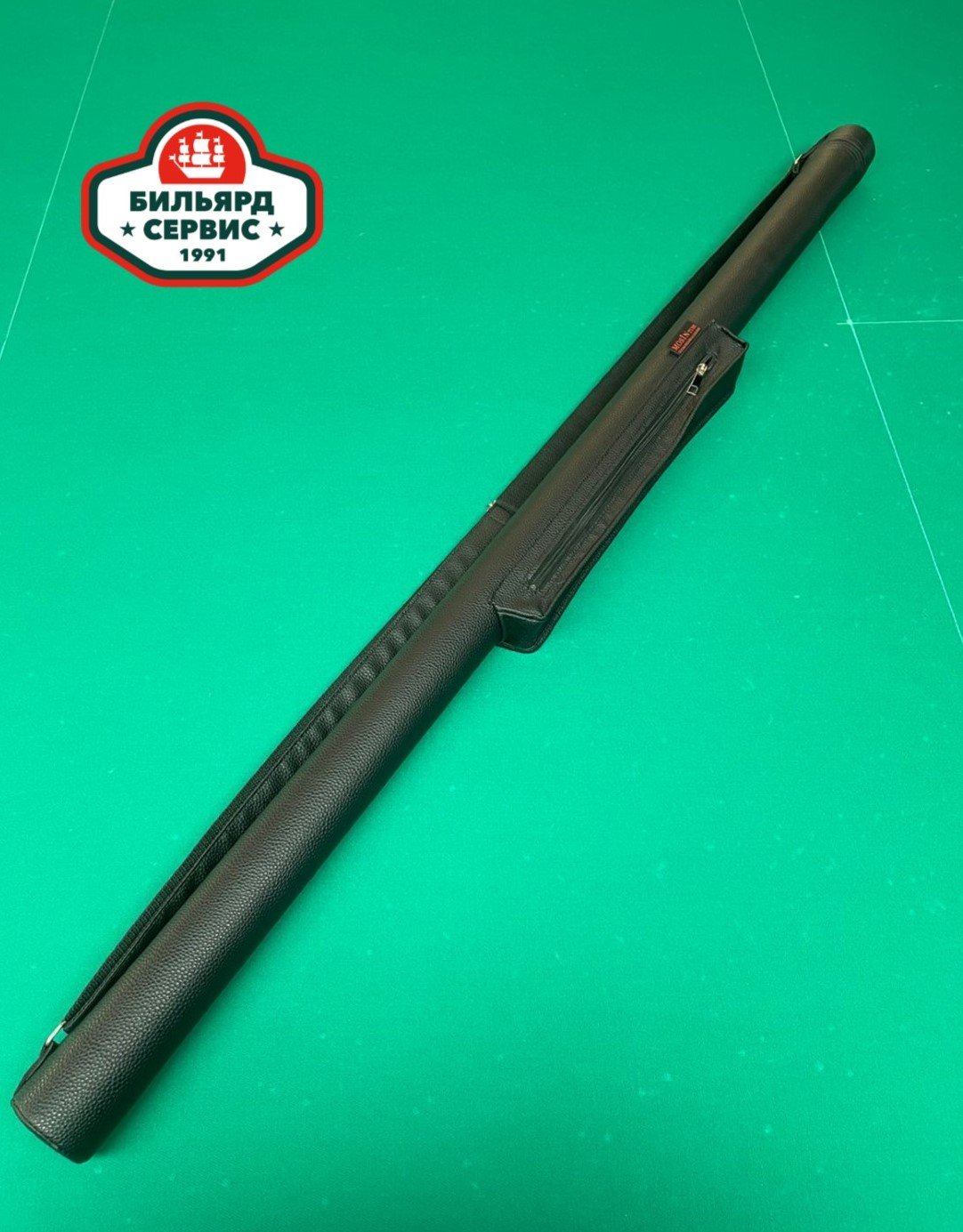 Материал экокожа. 2 внутренних отдела, большой наружный карман 40 см, подходит для переноски удлинителя. Тубус рекомендован для хранение и перемещения двусоставного кия 3/4 снукер.