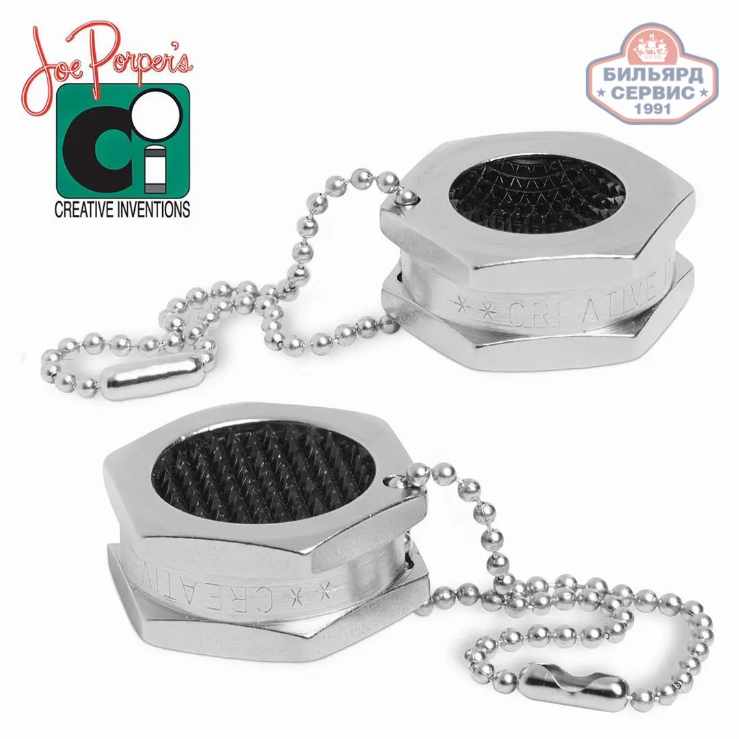 Joe Porper's Hexagon Shaper/Tacker - не только необходимый каждому бильярдисту инструмент, но и стильный подарок, который можно использовать и как модный брелок для ключей. Инструмент предназначен для выполнения двух операций. Одна его рабочая сторона при обработки поверхности наклейки делает ее рыхлой, тем самым обеспечивая более надежный и плотный контакт с мелом. Вторая сторона инструмента придает поверхности наклейки игровую сферическую форму.