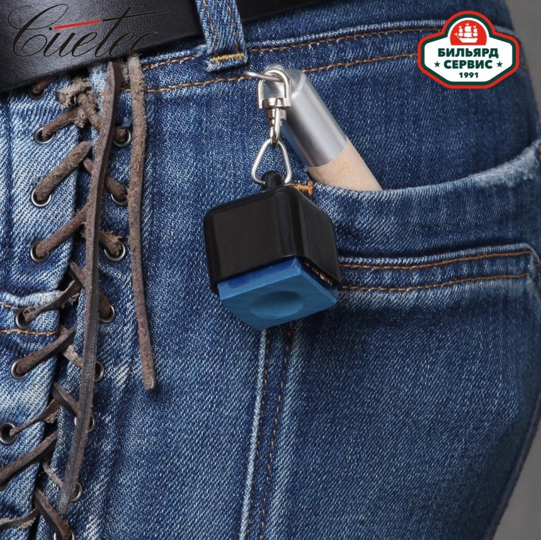 Cuetec Tip Prep выполняет две функции: это и инструмент для рыхления наклейки, чтобы мел лучше держался на ней, и держатель для мела, который удобно и надежно держать в кармане. При необходимости мел можно очень быстро достать, помелить наклейку и убрать обратно в карман.