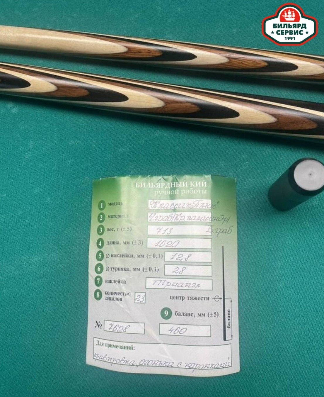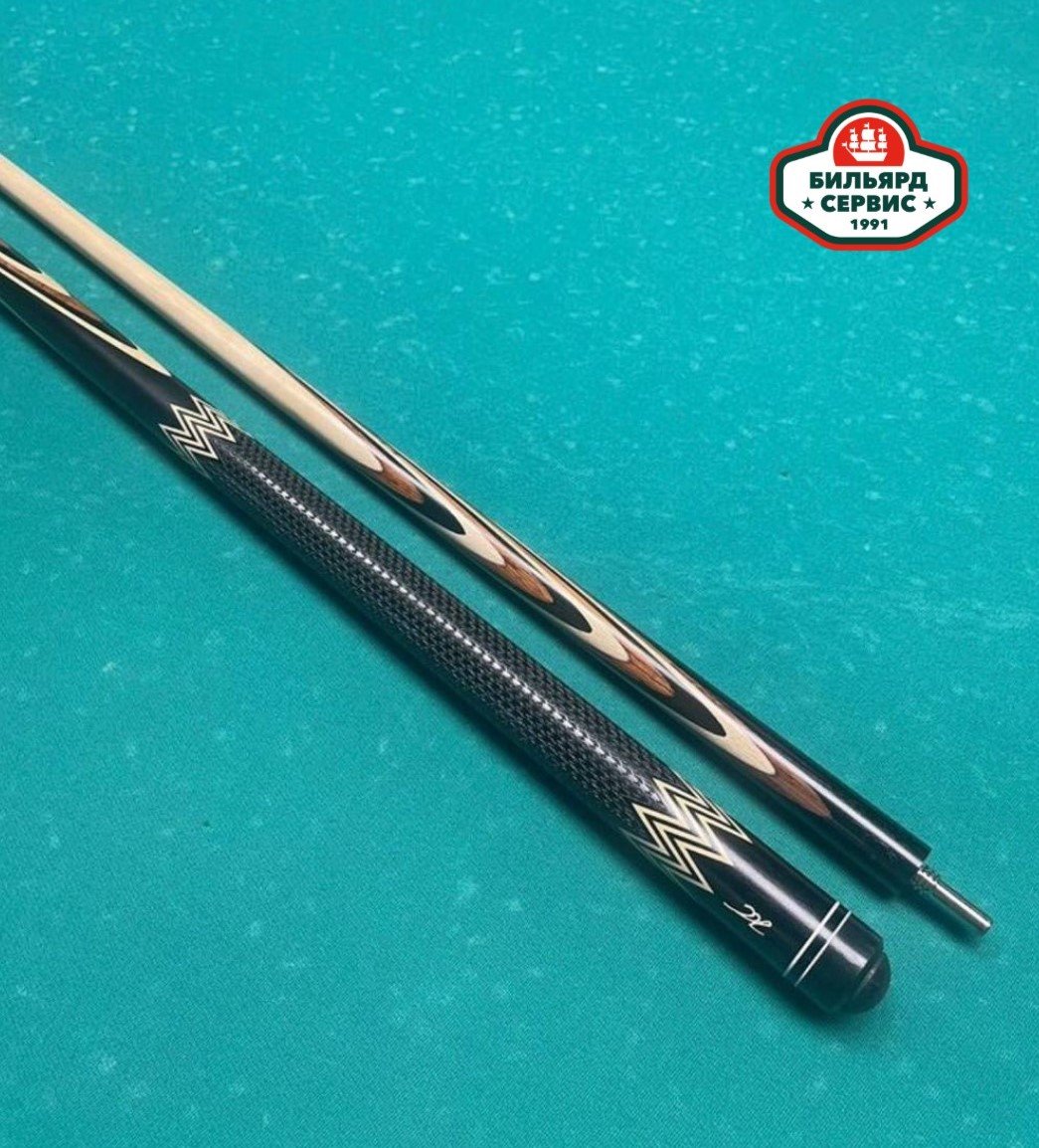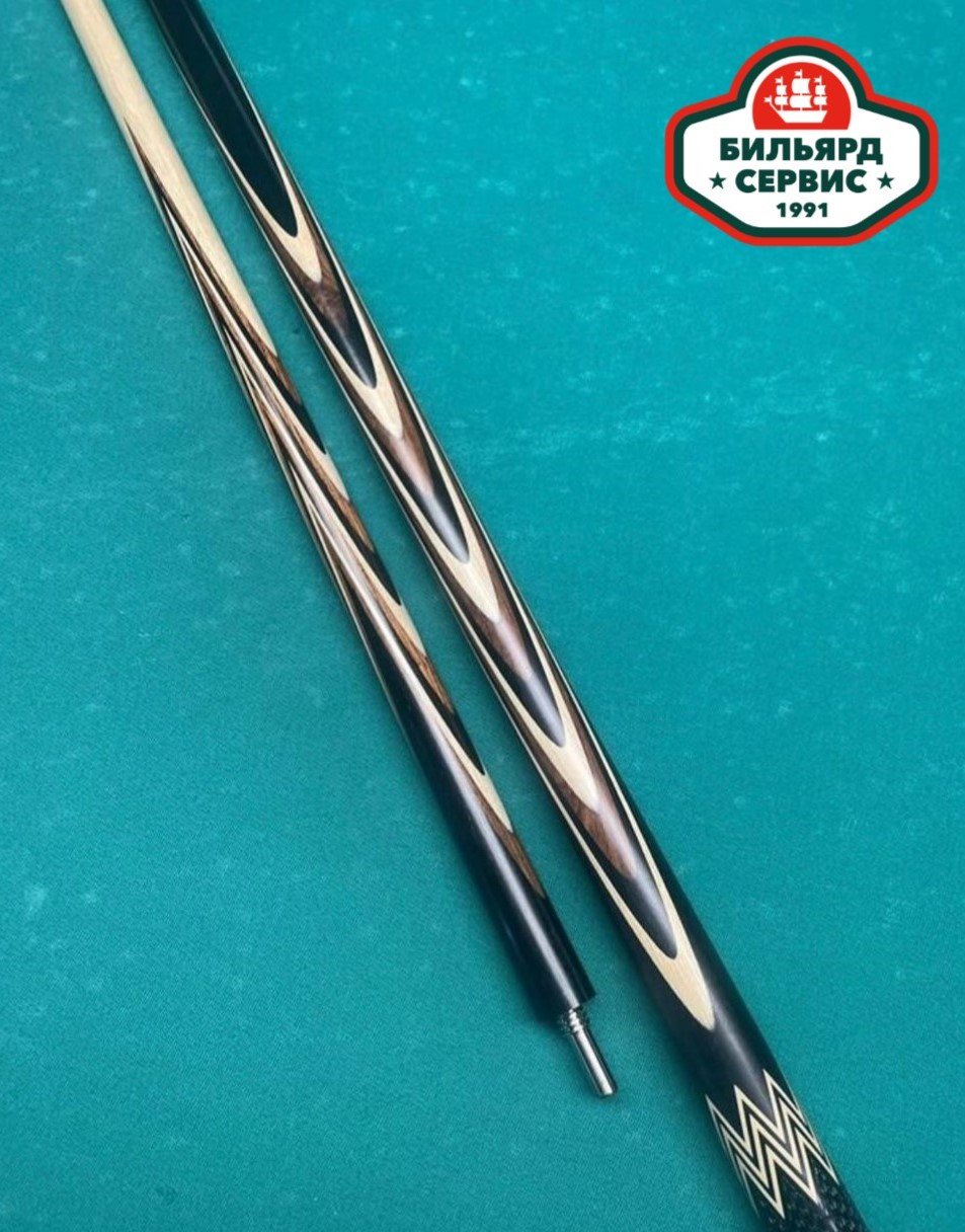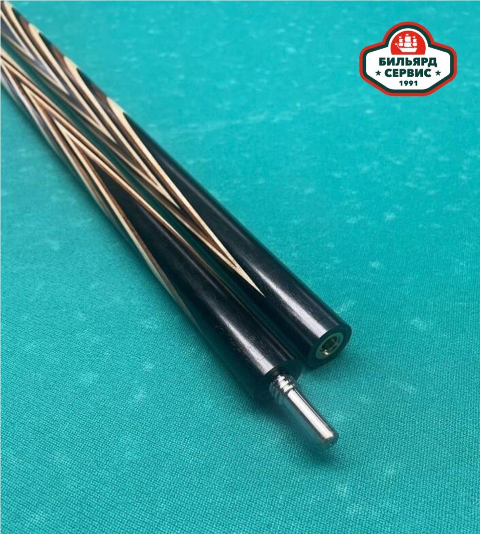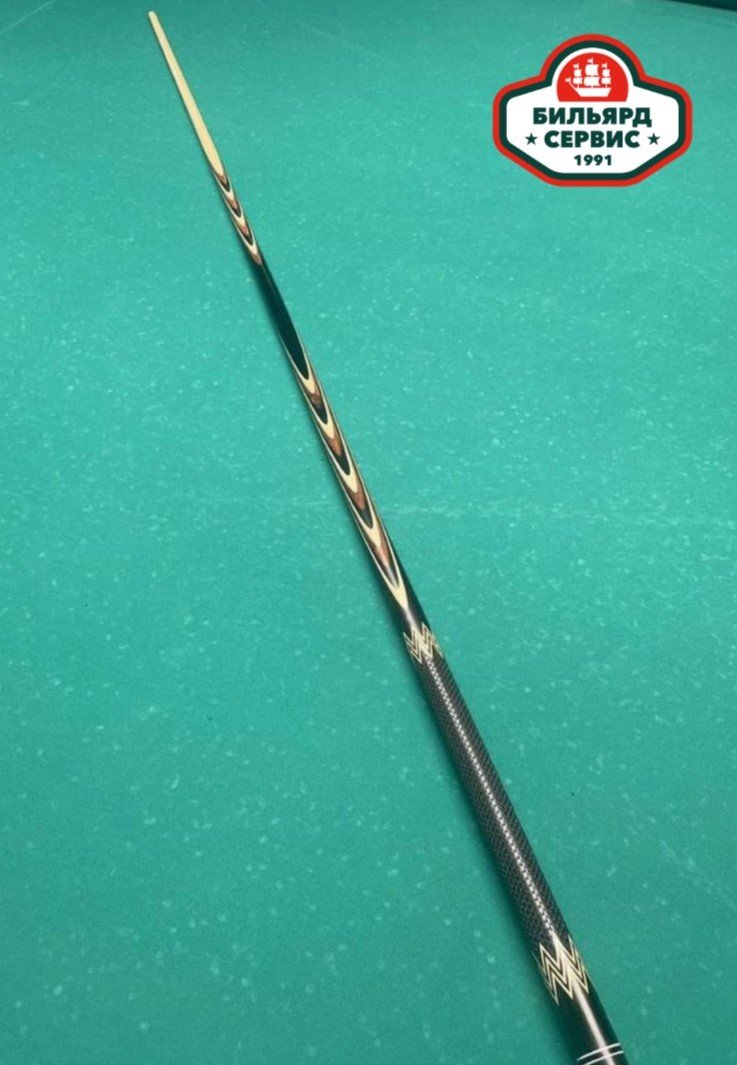 Красивый игровой кий известного белорусского мастера Сергея Каюкова. Основа - чёрный граб, в запилах палисандр и граб.
