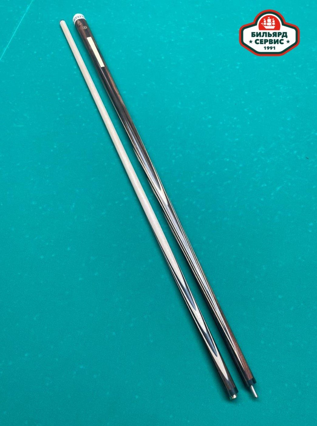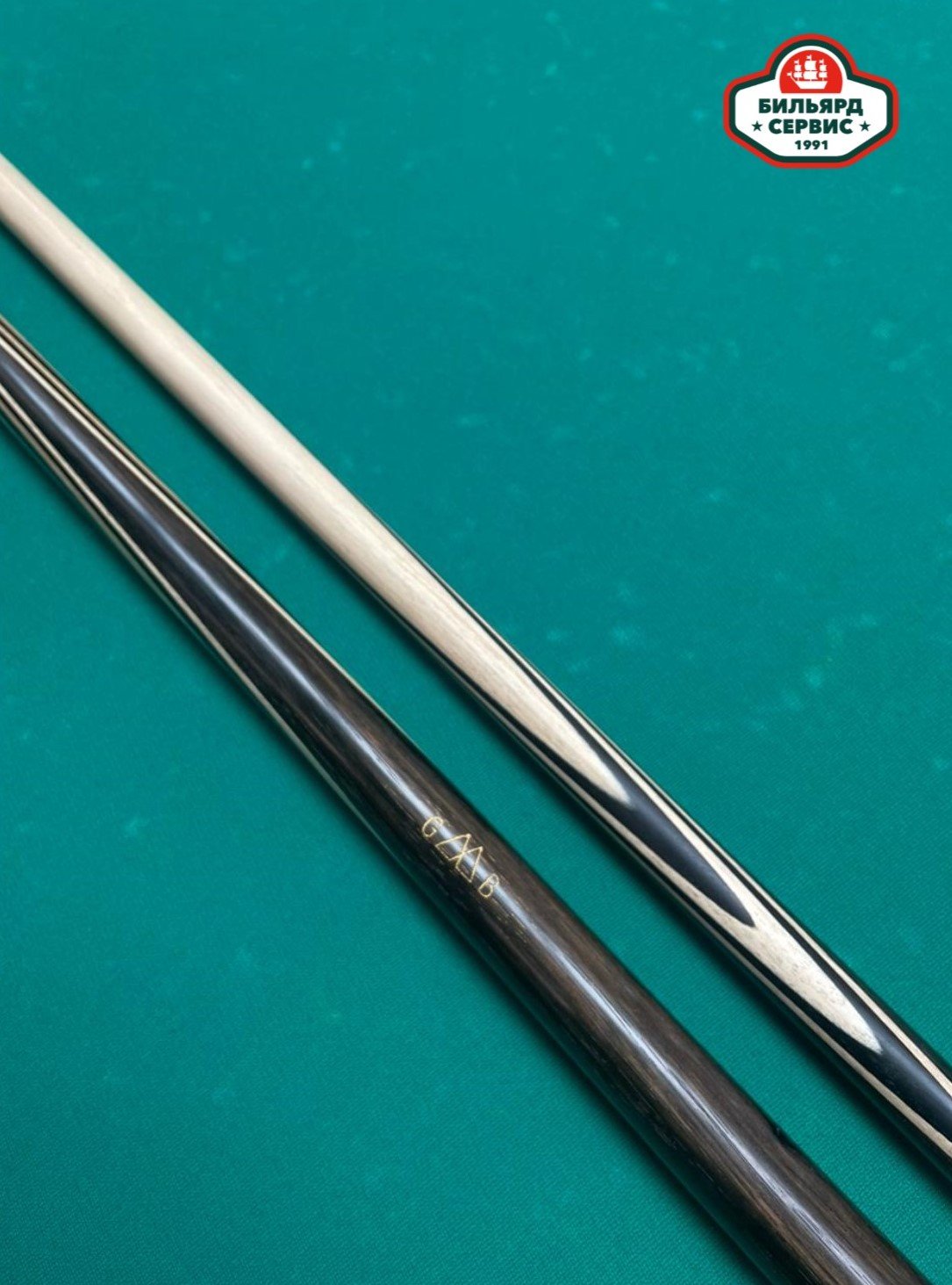 Двусоставной кий для русского бильярда мастерской Геннадия Баринова (выполнен Цоем). Классический запил, основное дерево макасар (эбен).