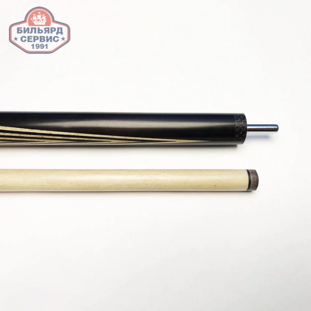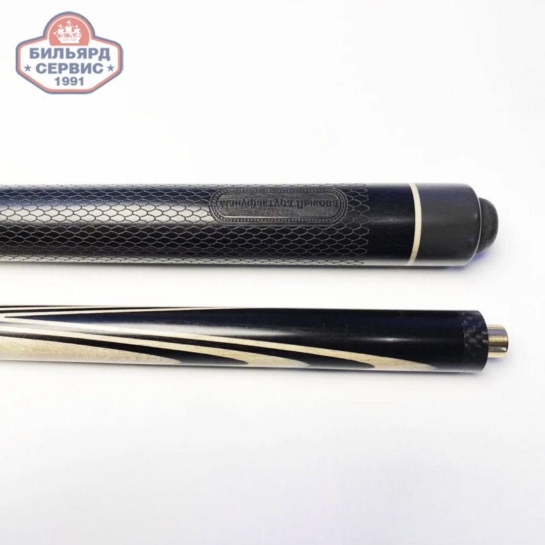 Кий двусоставной, ручной работы. Заготовка собирается из цельных клиньев, а обрабатывается только методом продольного снятия вплоть до шлифовки включительно. Недорогой двухсоставной бильярдный кий из чёрного граба. Несмотря на простоту модели кий имеет высокие игровые свойства