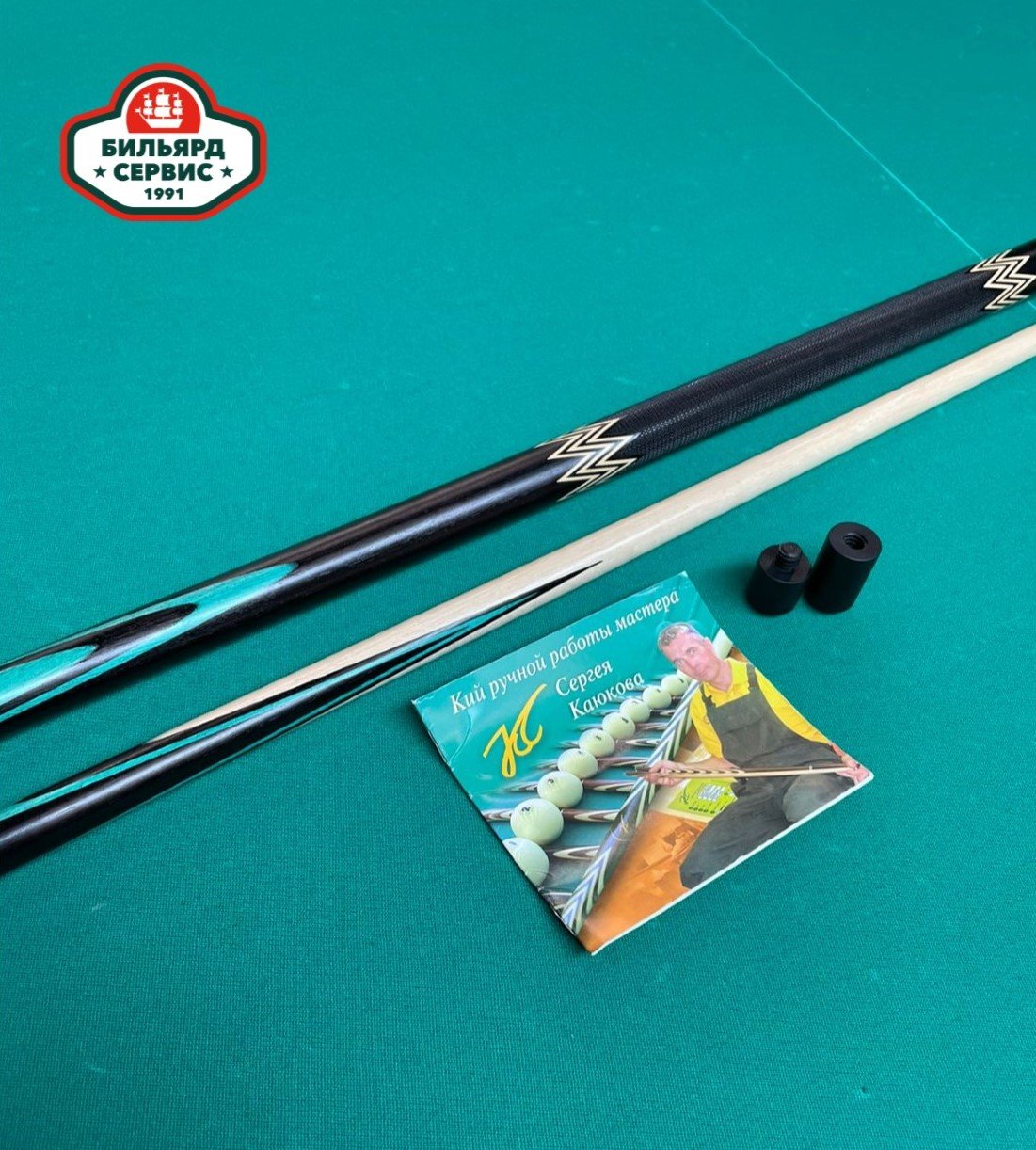 Отличный плотный кий белорусского мастера Сергея Каюкова (чёрный граб/крашенный граб). К каждому кию идёт гарантийный паспорт с точными характеристиками и защитные колпачки для скрутки.