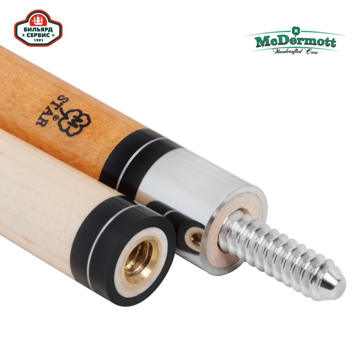 Двусоставный кий для пула McDermott Star S11 состоит из двух частей: шафта и турняка. Последний изготовлен из древесины клена «Птичий глаз».