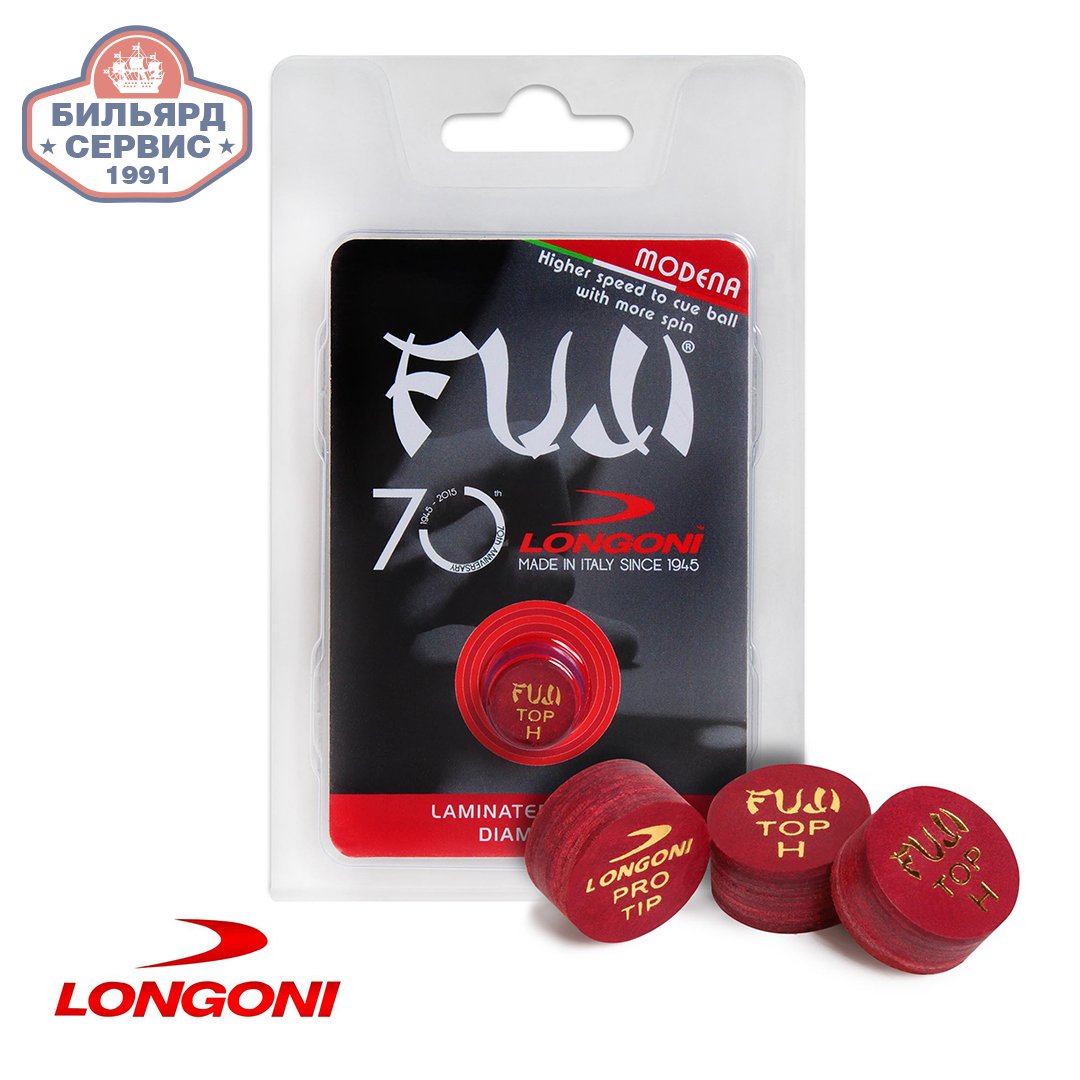 Многослойные наклейки Longoni Fuji производит один из старейших производителей бильярдного оборудования в мире - итальянская компания Norditalia. Наклейки изготовлены из десяти слоев спрессованной свиной кожи. Предлагаются в двух диаметрах - 13 и 14 мм - а также в трех градациях жесткости: мягкие, средние либо жесткие (Soft, Medium и Hard соответственно). В России марка Longoni традиционно популярна у поклонников русской пирамиды.