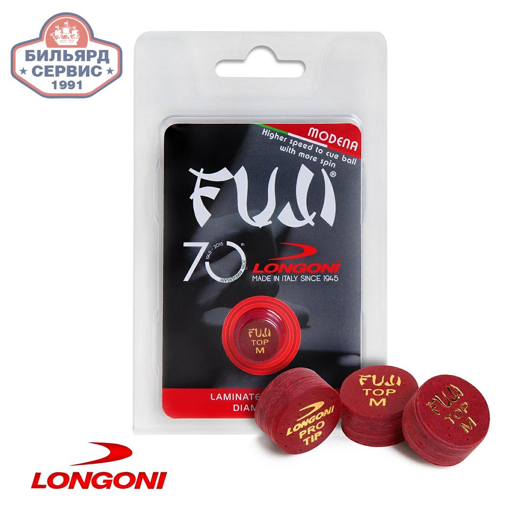 Многослойные наклейки Longoni Fuji производит один из старейших производителей бильярдного оборудования в мире - итальянская компания Norditalia. Наклейки изготовлены из десяти слоев спрессованной свиной кожи. Предлагаются в двух диаметрах - 13 и 14 мм - а также в трех градациях жесткости: мягкие, средние либо жесткие (Soft, Medium и Hard соответственно). В России марка Longoni традиционно популярна у поклонников русской пирамиды.