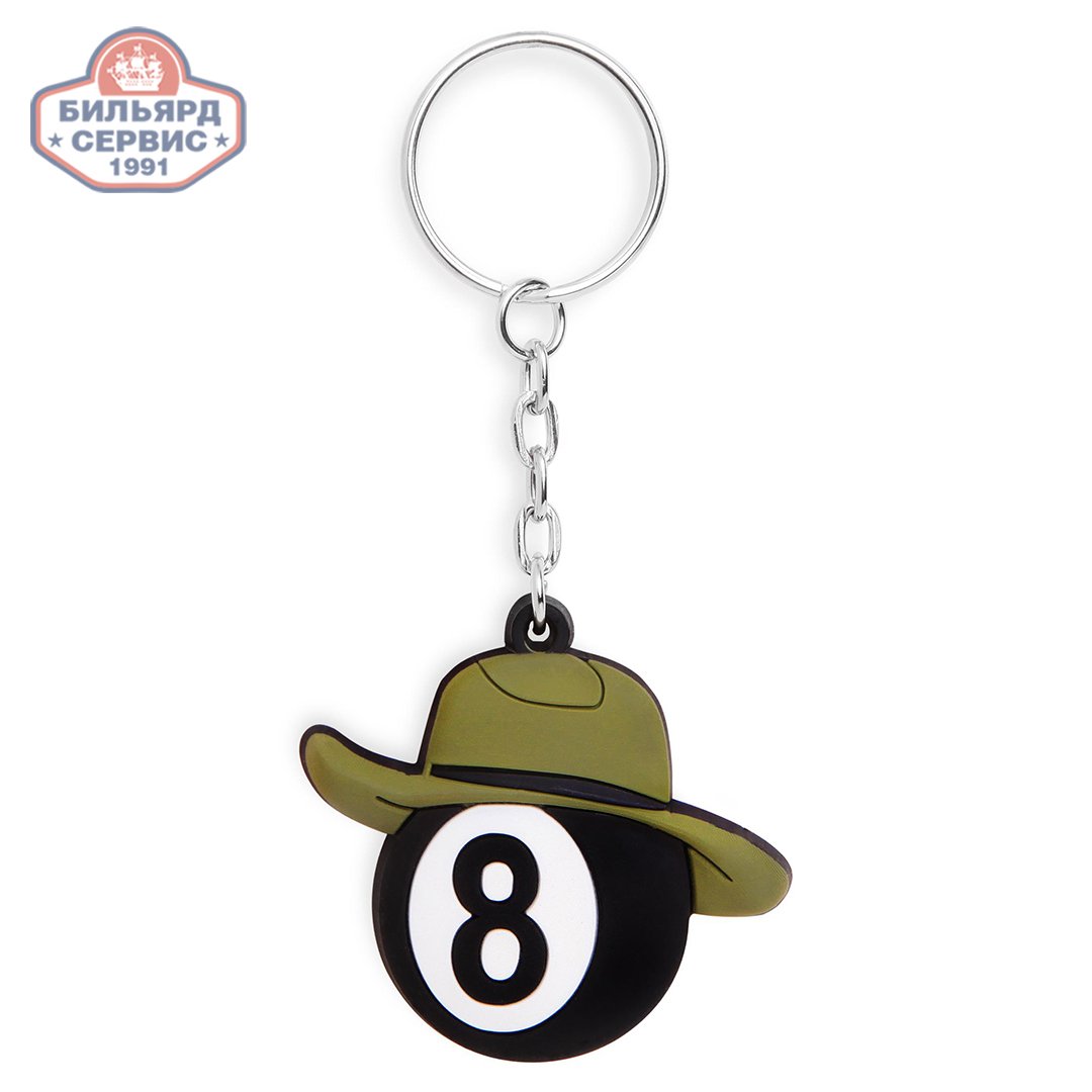 Брелок в виде черного бильярдного шара №8 в шляпе цвета хаки отлично подойдет в качестве недорогого подарка коллеге или приятелю, увлекающемуся игрой в бильярд. Диск брелока плоский, но благодаря высококачественному исполнению он выглядит объемным, тем самым привлекая к себе внимание.