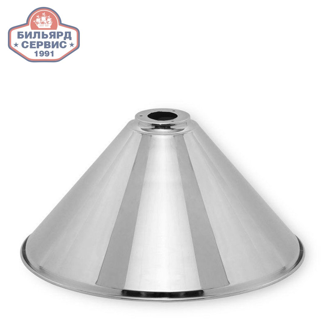 Металлический плафон Evergreen серебяного цвета и классической конусообразной формы. Предназначен для бильярдных светильников, может использоваться в обычных интерьерных лампах совместимых конструкции и крепежа.