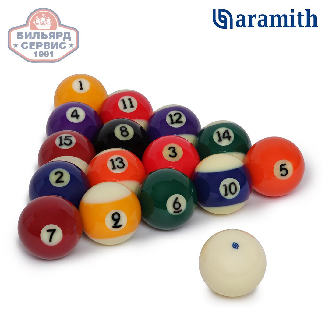 Aramith Premium - шары из фенол-альдегидной смолы производства бельгийской фирмы Saluc S.A., мирового лидера индустрии производства бильярдных шаров. Комплект состоит из 15 шаров с номерами и битка стандартного для пула размера 57,2 мм.