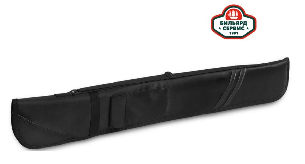Чехол предназначен для одного кия. Отделка - высококачественный синтетический материал. Торцевая застежка (молния) , ручка для переноски, накладной карман.