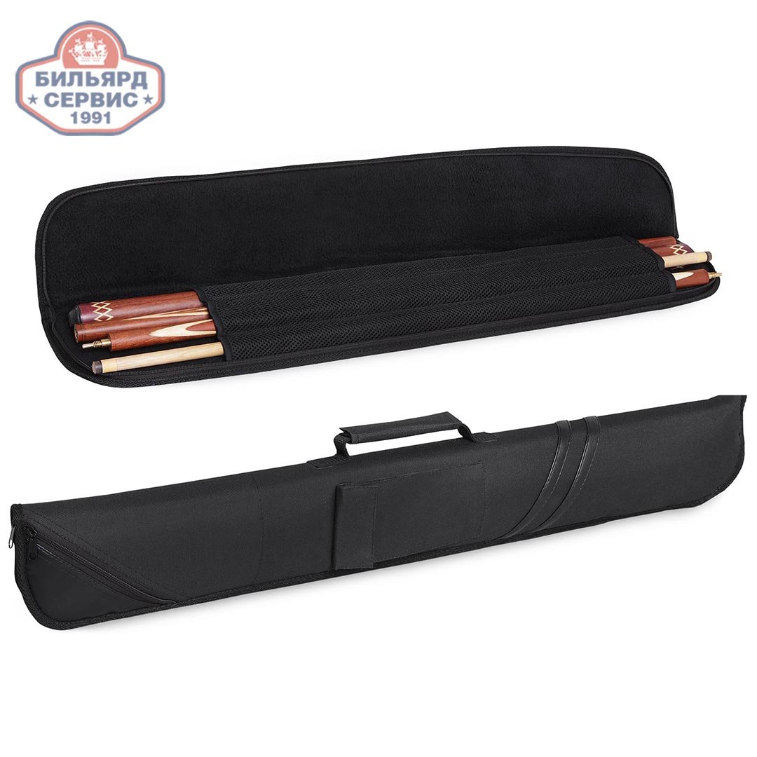 Чехол на два кия изготовлен из водостойкой мягкий ткани с отделкой из кожи. Оснащен 2 карманами, наплечным ремнем и ручкой для переноски.