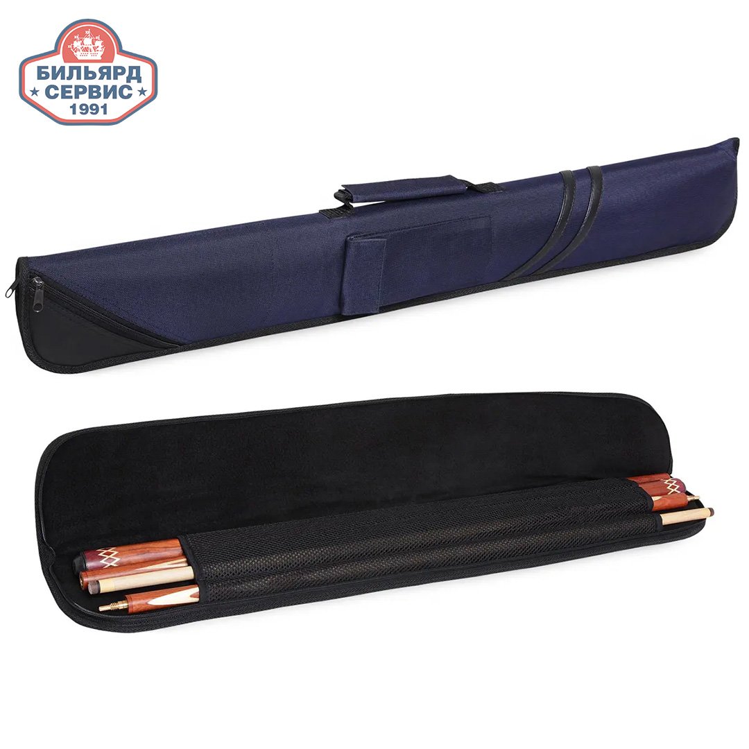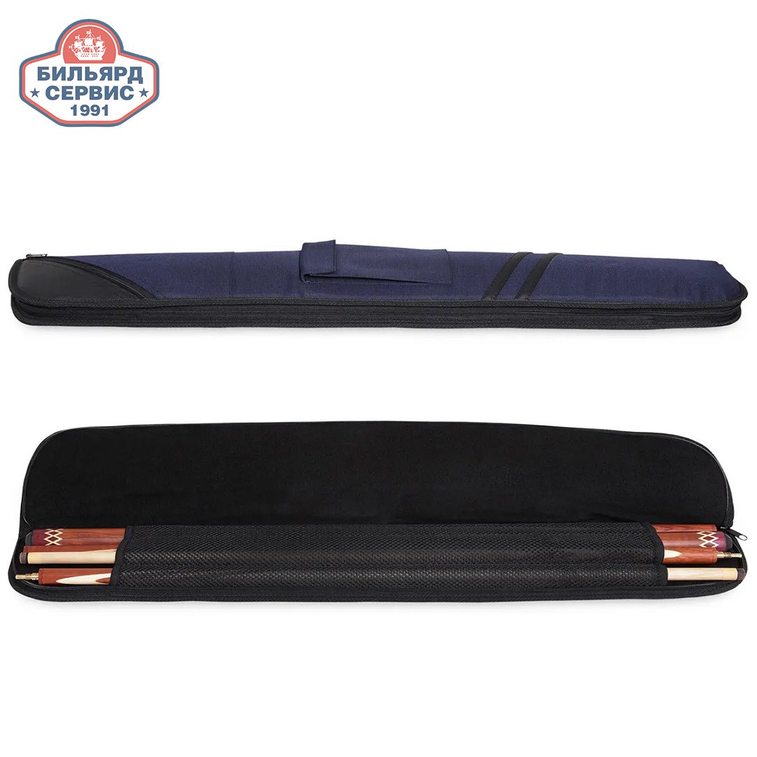 Чехол на два кия изготовлен из водостойкой мягкий ткани с отделкой из кожи. Оснащен 2 карманами, наплечным ремнем и ручкой для переноски.
