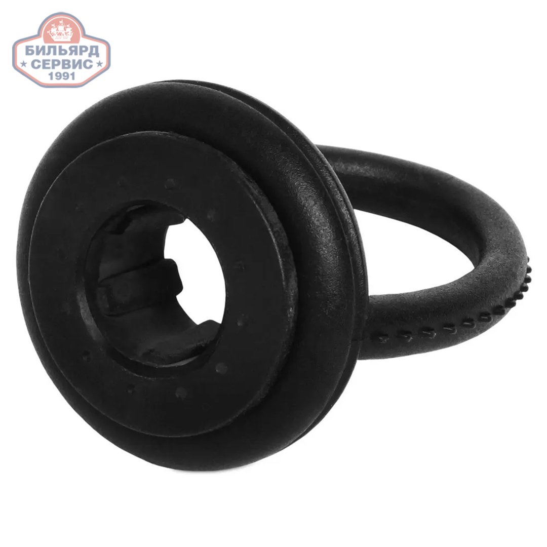 Держатель для кия пластиковый, черный. Подходит для киев с наклейкой диаметром 12-14 мм. Использование держателя обеспечивает бережливый способ подвешивания кия: кий фиксируется резиновой втулкой на уровне наклейки (стакана).