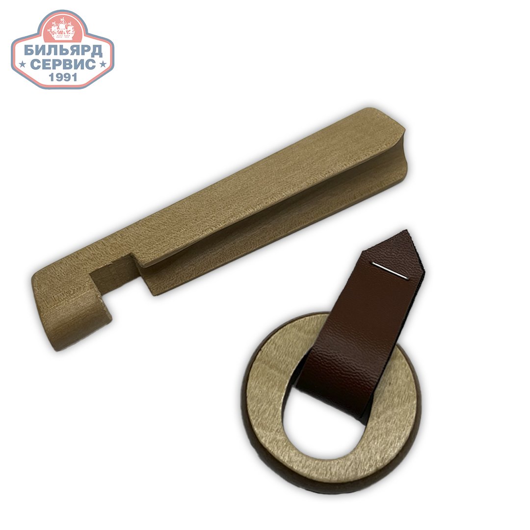 Инструмент, который значительно облегчает работу по смене наклейки на бильярдном кие, надежно фиксируя ее на время, пока засыхает клей. Вероятно, каждый игрок, самостоятельно менявший наклейку, сталкивался с тем, что, пока клей не схватился, наклейка может сместиться. Между тем, наклейку необходимо не просто приклеить, а максимально плотно прижать к стакану, чтобы в пространство между склеиваемыми поверхностями не попали микроскопические пузырьки воздуха, которые снизят прочность соединения.