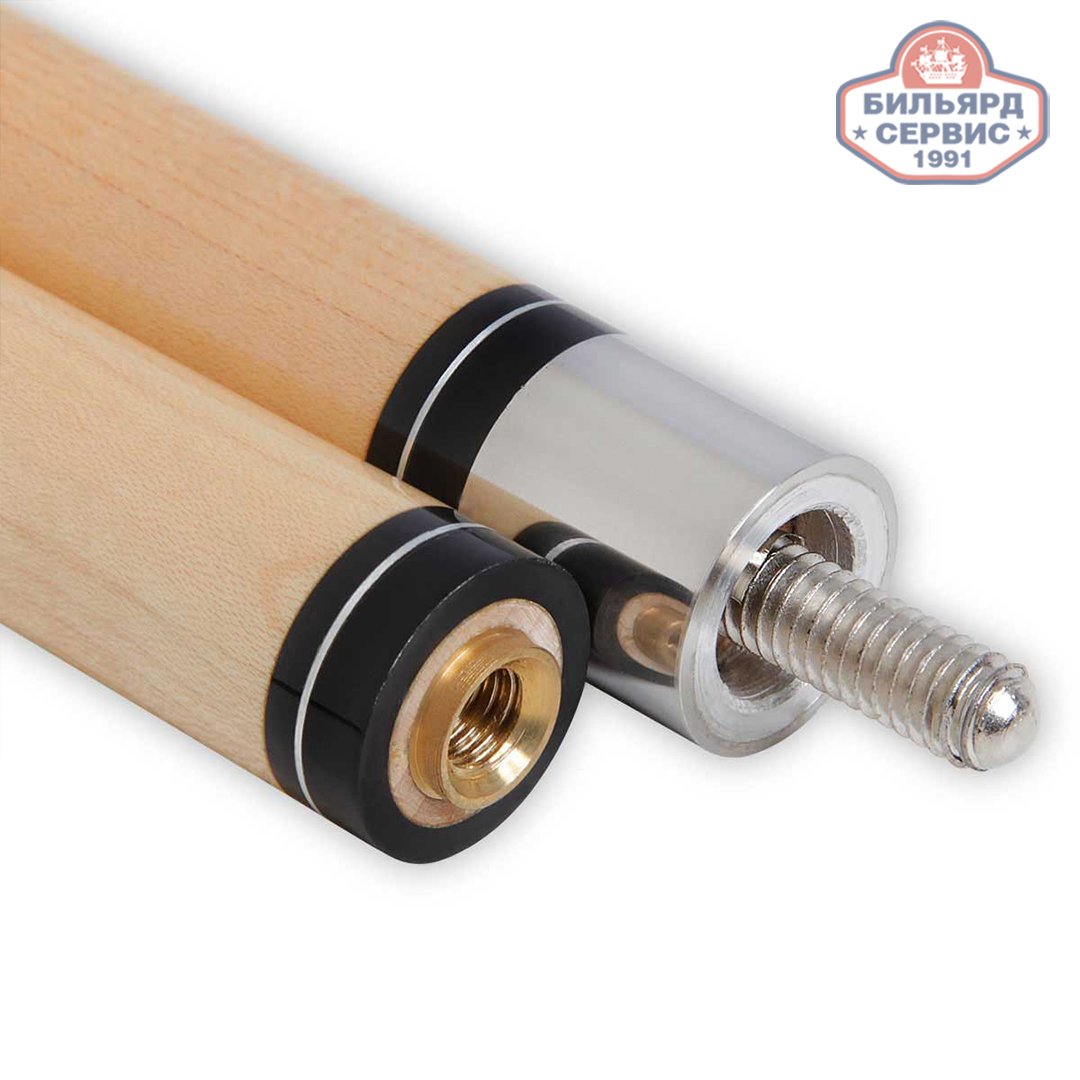 Двухсоставной кий Titan T-295 для пула изготовлен из мерсавы - красивой и прочной древесины африканских пород, имеющей показатель твердости, превышающий аналогичный параметр древесины дуба. Длина кия 149 см, вес около 530-550 г. На ударопрочный пластиковый наконечник модели установлена наклейка из прессованного цельного куска натуральной кожи диаметром 12 мм. Скрутка стыка изготовлена из нержавеющего металла, кольца - из металла и пластика. Турняк оснащен кожаной обмоткой и резиновым бампером.