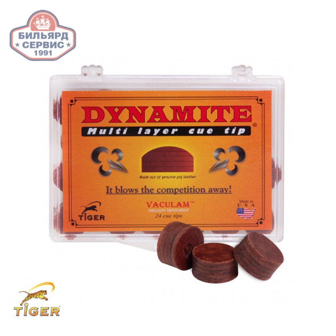 Профессиональная наклейка для кия Tiger Dynamite от одной из ведущих в мире компании-производителя бильярдных наклеек и средств по уходу за кием Tiger Products. Изготовлена из пяти слоев отборной свиной кожи и выпускается диаметром 13 миллиметров.