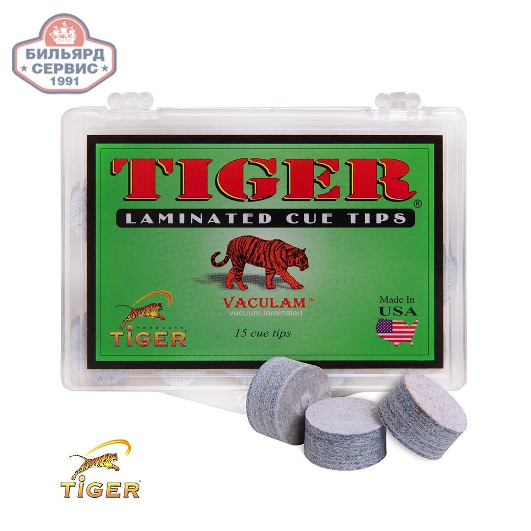 Для изготовления 11 слоев наклеек для кия Tiger используется как свиная (для средней и высокой жесткости), так и коровья кожа (для низкой жесткости).При склеивании слоев применяется уникальный процесс вакуумного наслоения Vaculam, который позволяет устранять мельчайшие пузырьки воздуха между слоями кожи наклейки. Эти наклейки дают возможность выбора игроку (жесткость, игровые качества, контроль)